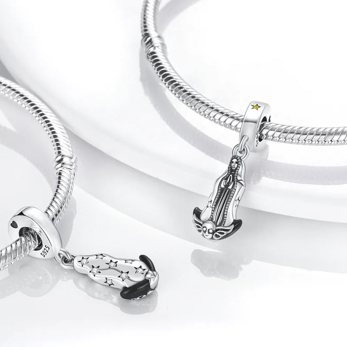 925 Silver Color Star Moon Heart Safety Chain CZ Beads Angle Wing Pendant Fit Bangle Charms Bracelet DIY Women Original Jewelry