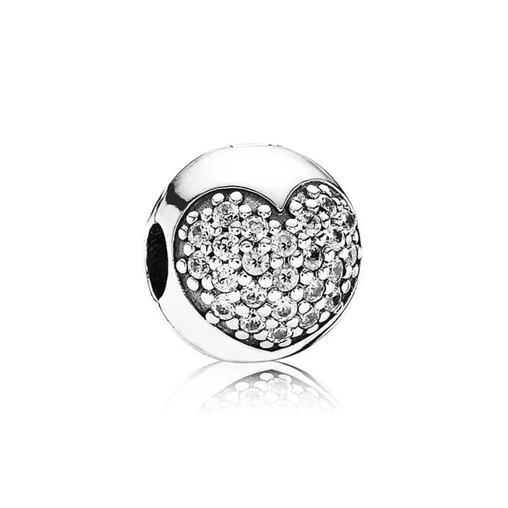 White Series Clear Stone Heart Clip Charm Fit Original 925 Sterling Silver Plated Bracelet Beads DIY Women Jewelry Gift Making